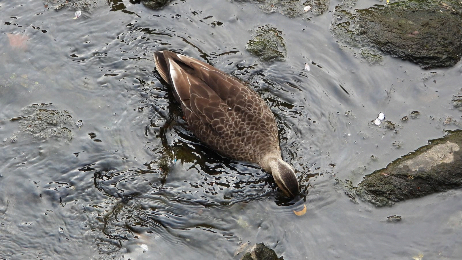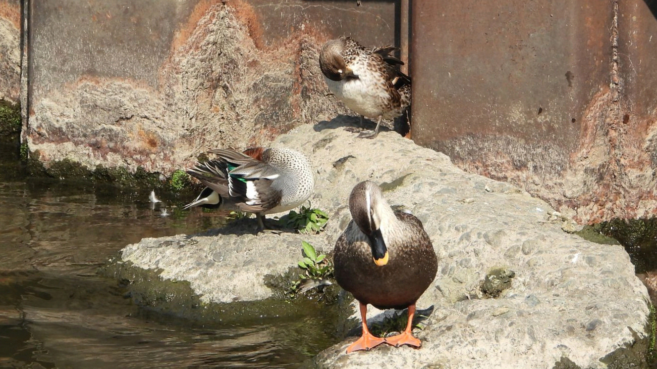 ⬇️ コガモ カルガモ カルガモは相沢川にも3羽いた。