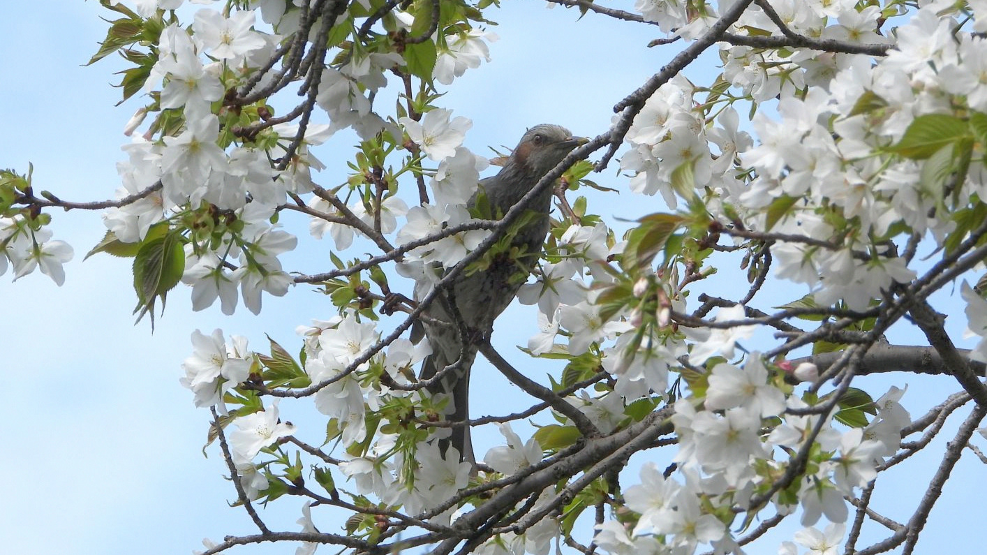⬇️ ヒヨドリ こちらも満開。オオシマザクラ系の桜は花も大きくて見栄えがする。