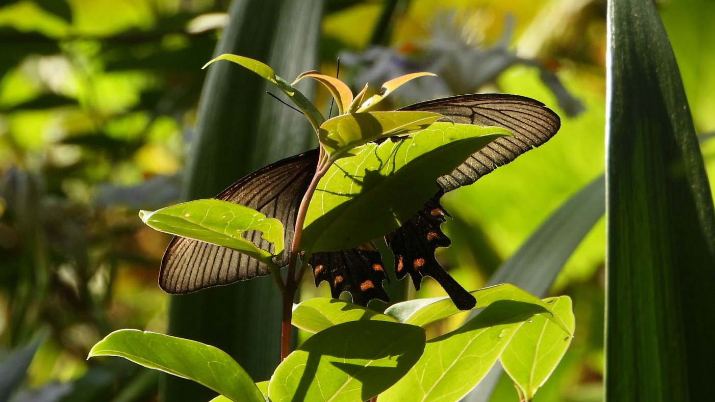 ⬇️ ジャコウアゲハ オナガアゲハだと思ったら、胴の赤い模様が写っていた。