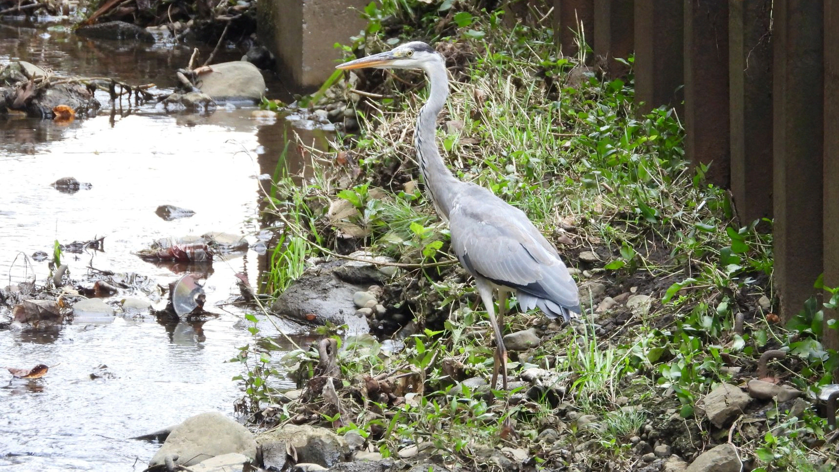 ⬇️ アオサギ   最近よく相沢川にやってくる。