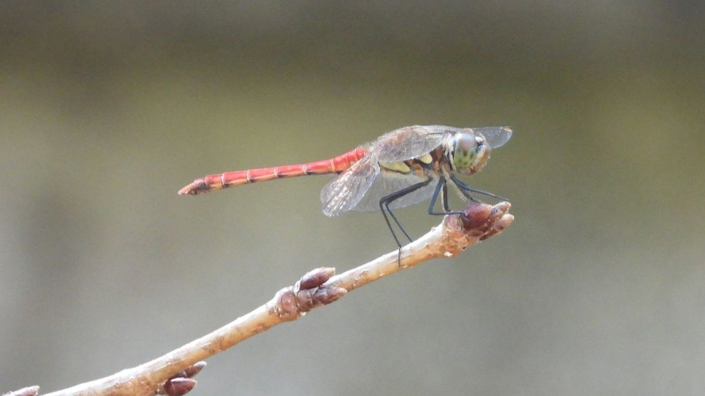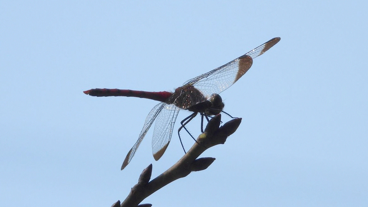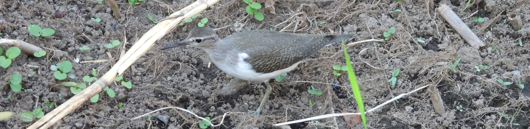 「藤棚」まで歩く。きょうはいつもよりトンボの種類が多かった。「海野橋」の上流近くまでイソシギが来ていて、バッタを捕食した。