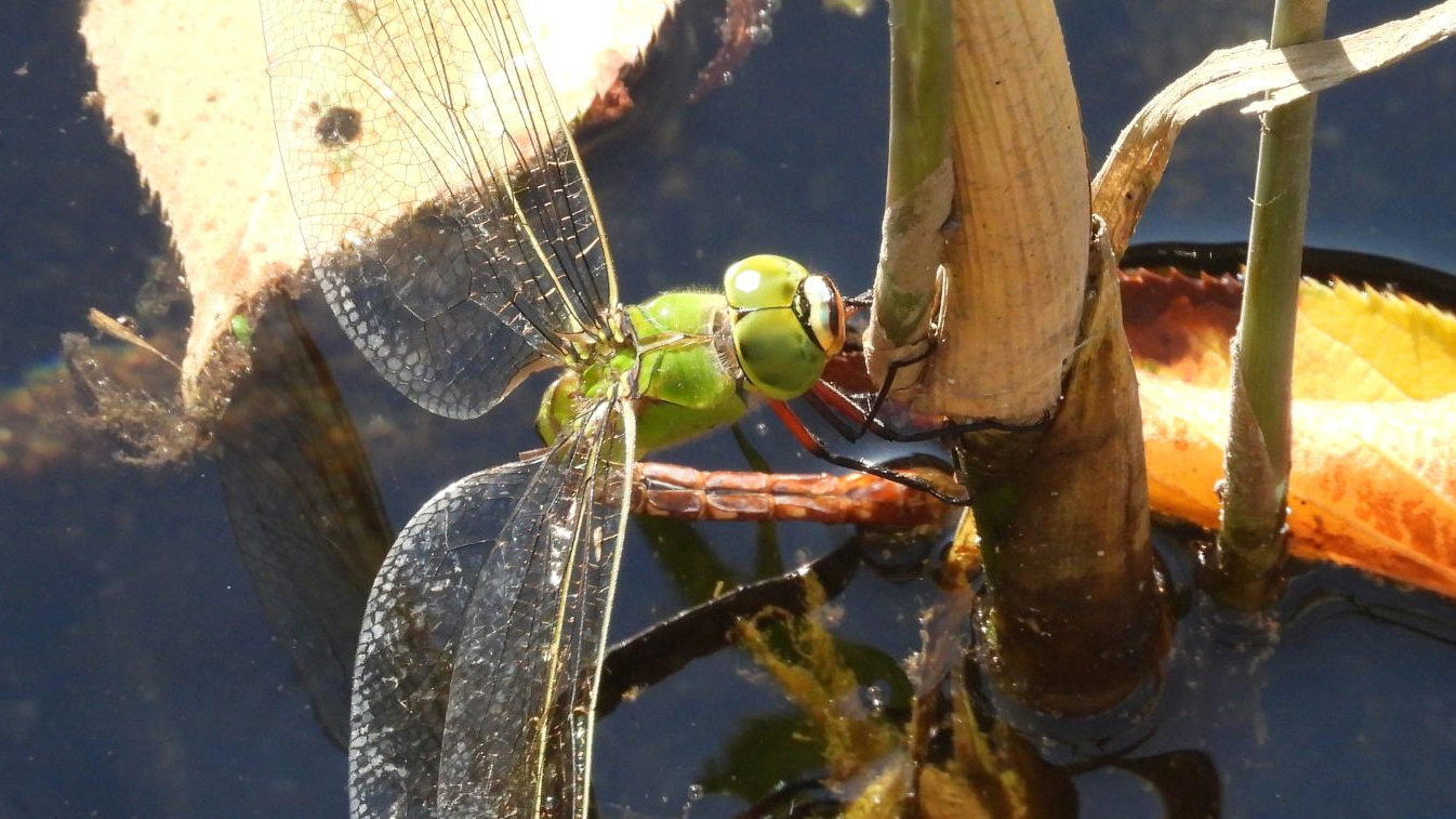 ⬇️ ギンヤンマ 連結して産卵することもあるし、メスだけで産卵することもある。