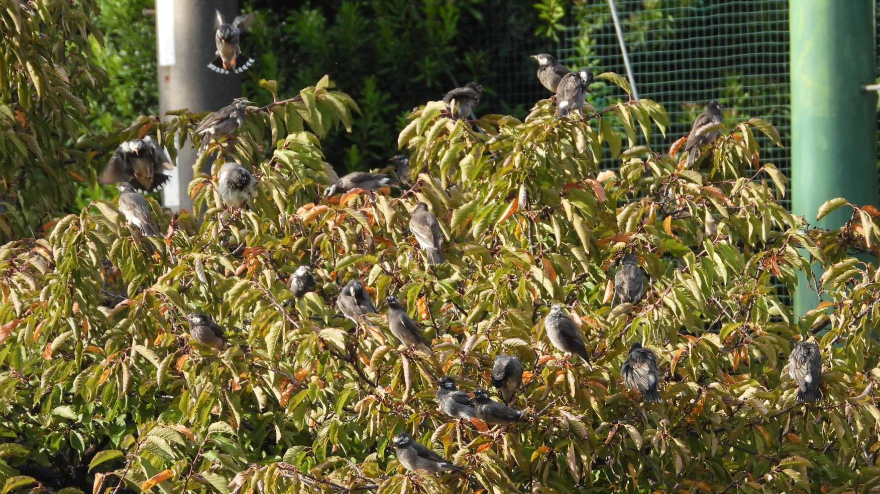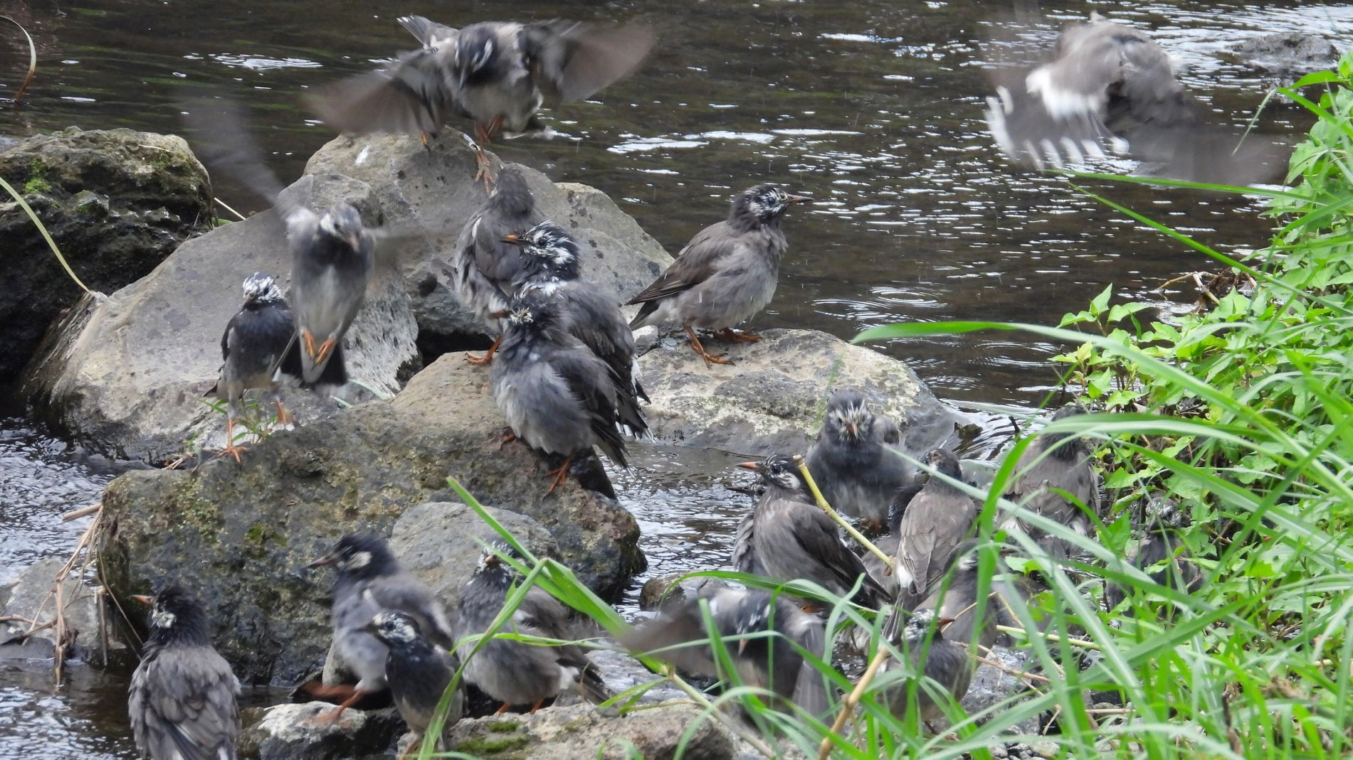 ⬇️ ムクドリ 集団行動がお得意? 一緒に水浴びして、一緒に羽繕い。
