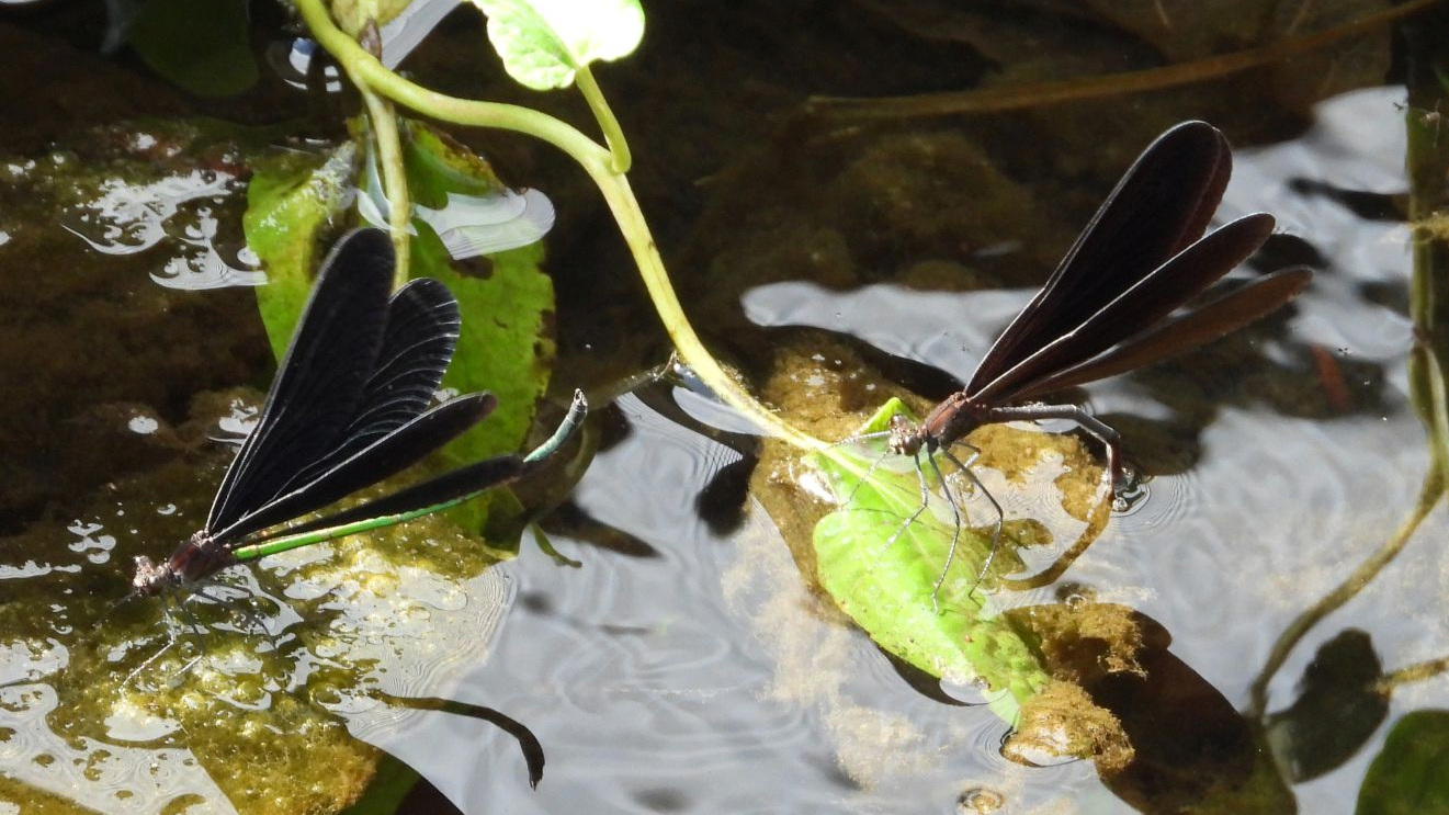 ⬇️ ハグロトンボ メスの産卵を近くで見守るオス。