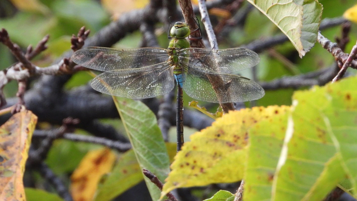 ⬇️ ギンヤンマ 捕まえた小さな昆虫を、枝に止まって食べていた。