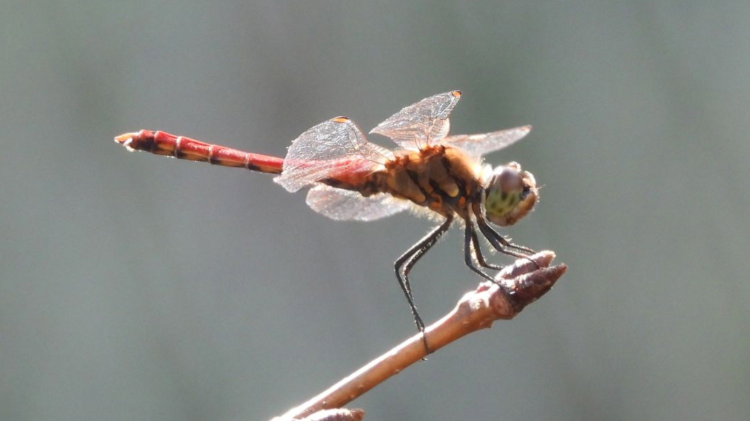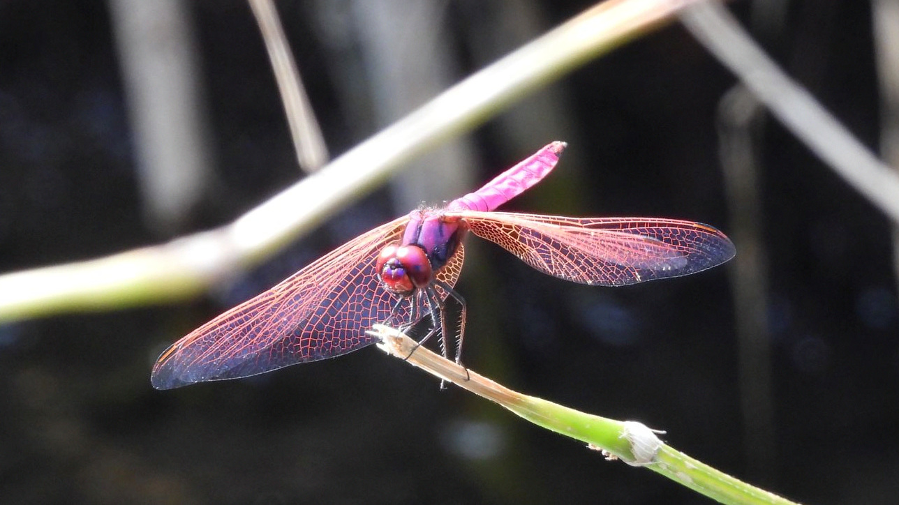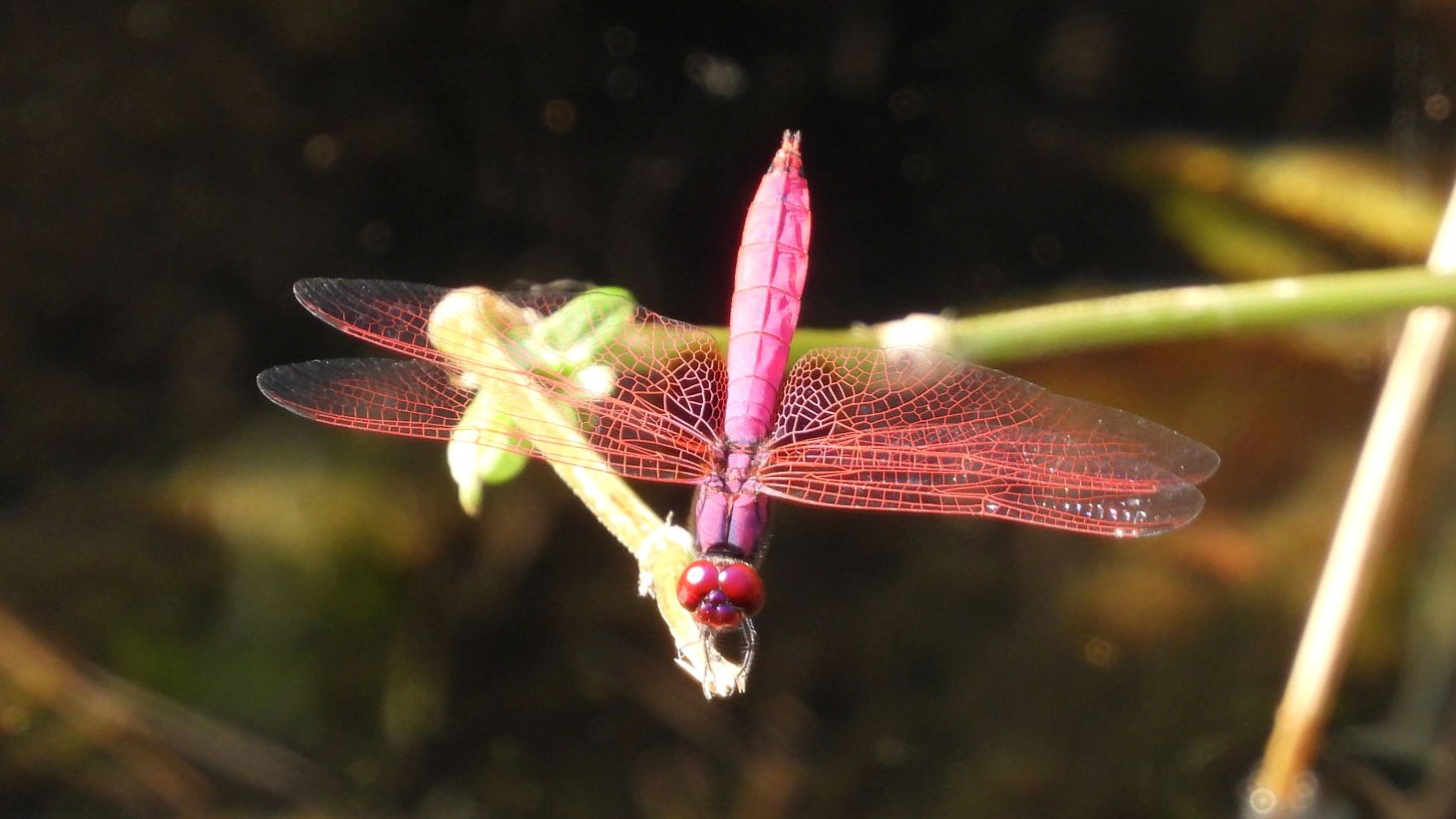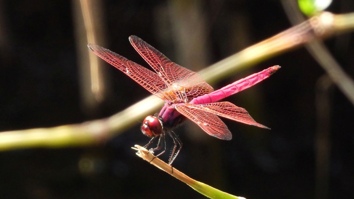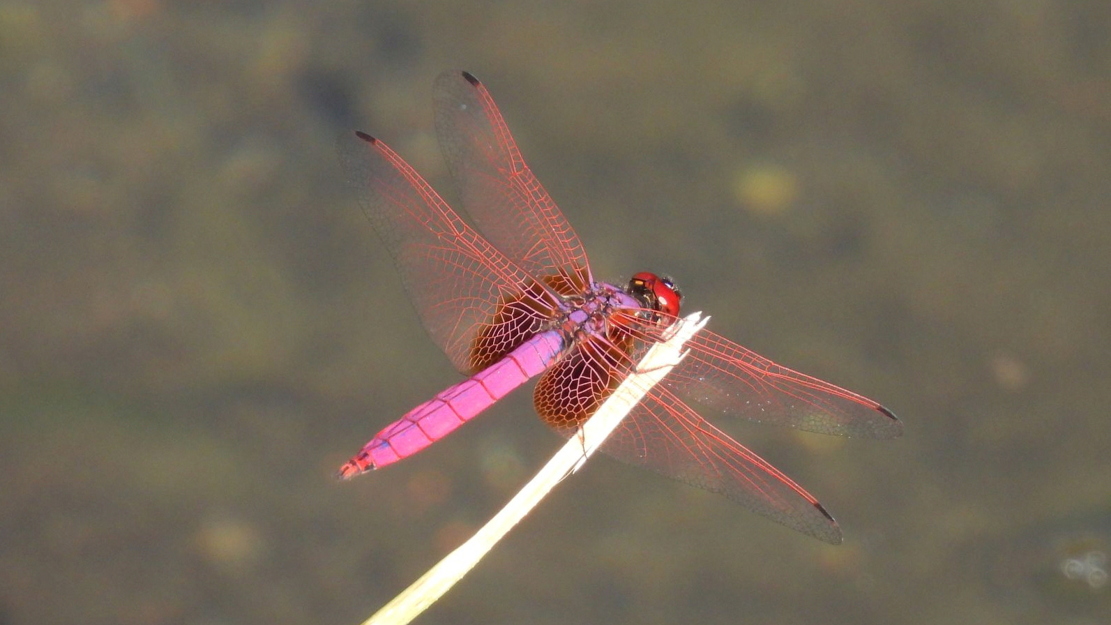 ⬇️   ベニトンボ    日光の当たり方で、こんなに色が変わる。ド派手だなあ。