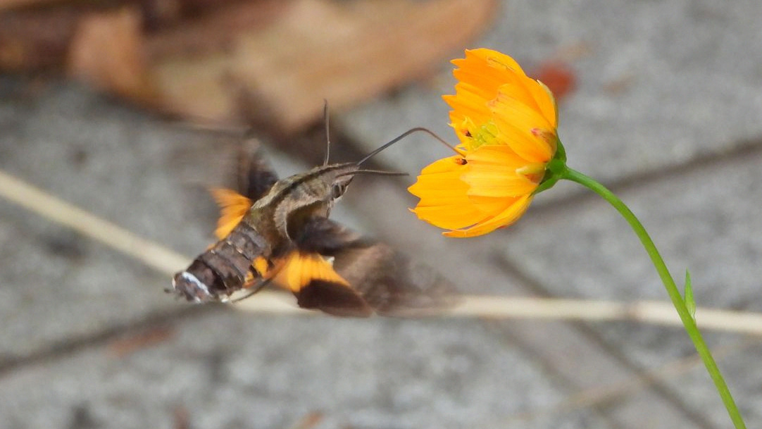 ⬇️ ホシホウジャク スズメガの仲間なので、曇天でも夕暮れでも見られる。