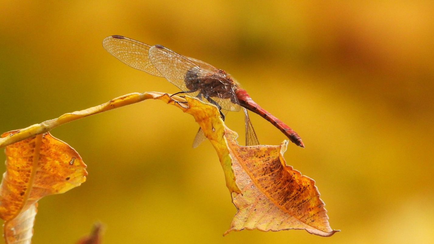 ⬇️ アキアカネ 紅葉をバックに、上がオスで下がメス。