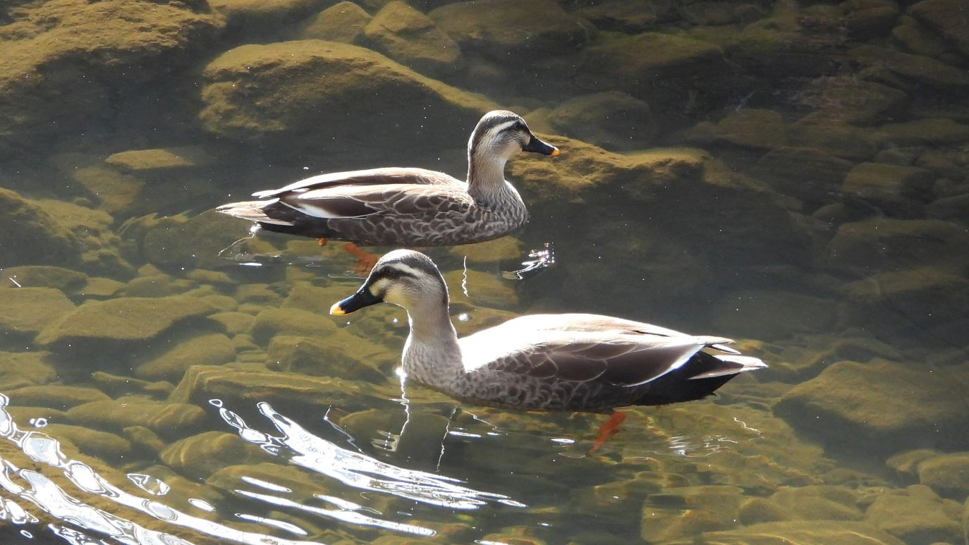 ⬇️ カルガモ きょうは「下瀬谷橋」より下流に9羽いた。