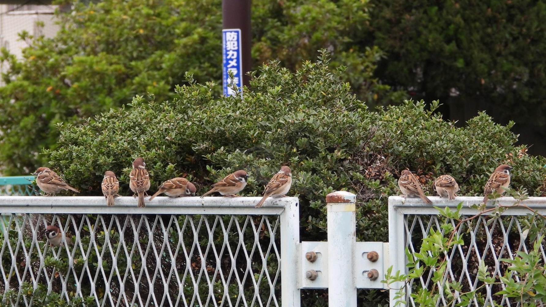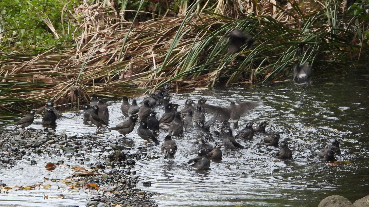 ⬇️ ムクドリ    芋の子を洗うような混雑ぶり。数えてみたら40羽以上いた。