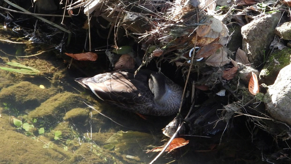 ⬇️ カルガモ 昼寝中。見過ごしてしまいそうだ。