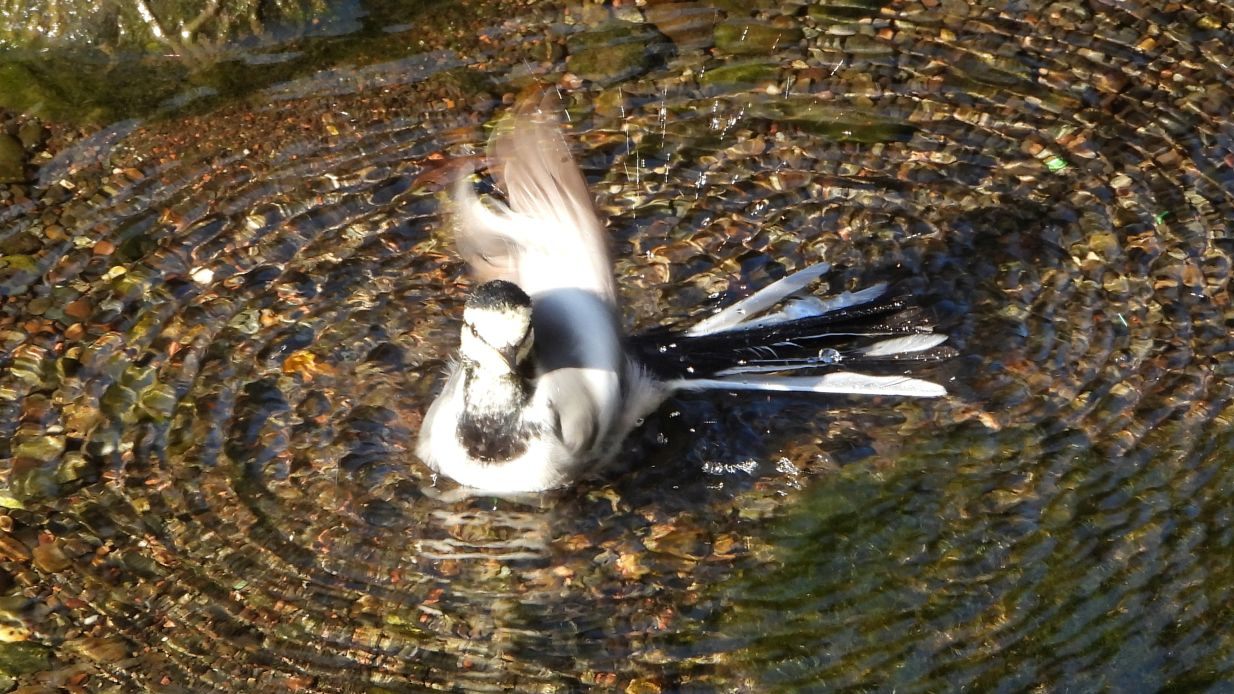 ⬇️ ハクセキレイ こちらも水浴び中。