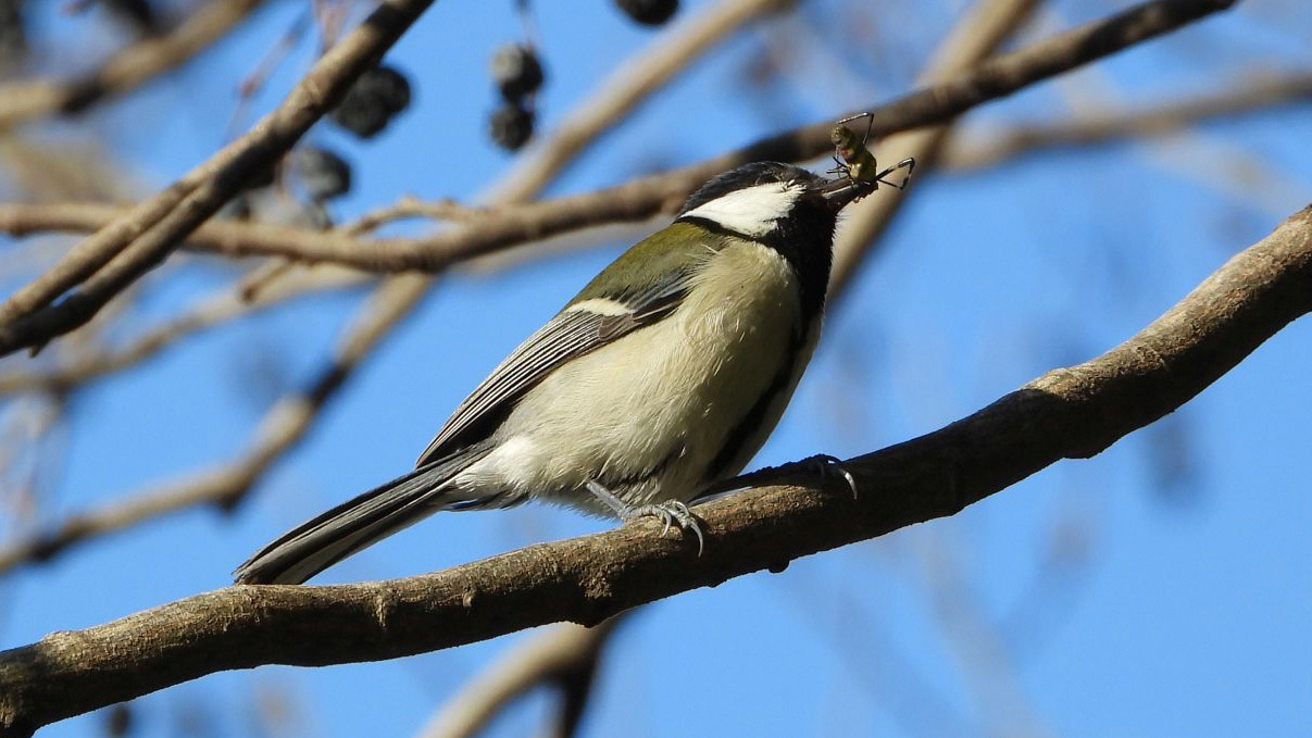 ⬇️ シジュウカラ 捕まえたのは蜘蛛のようだ。