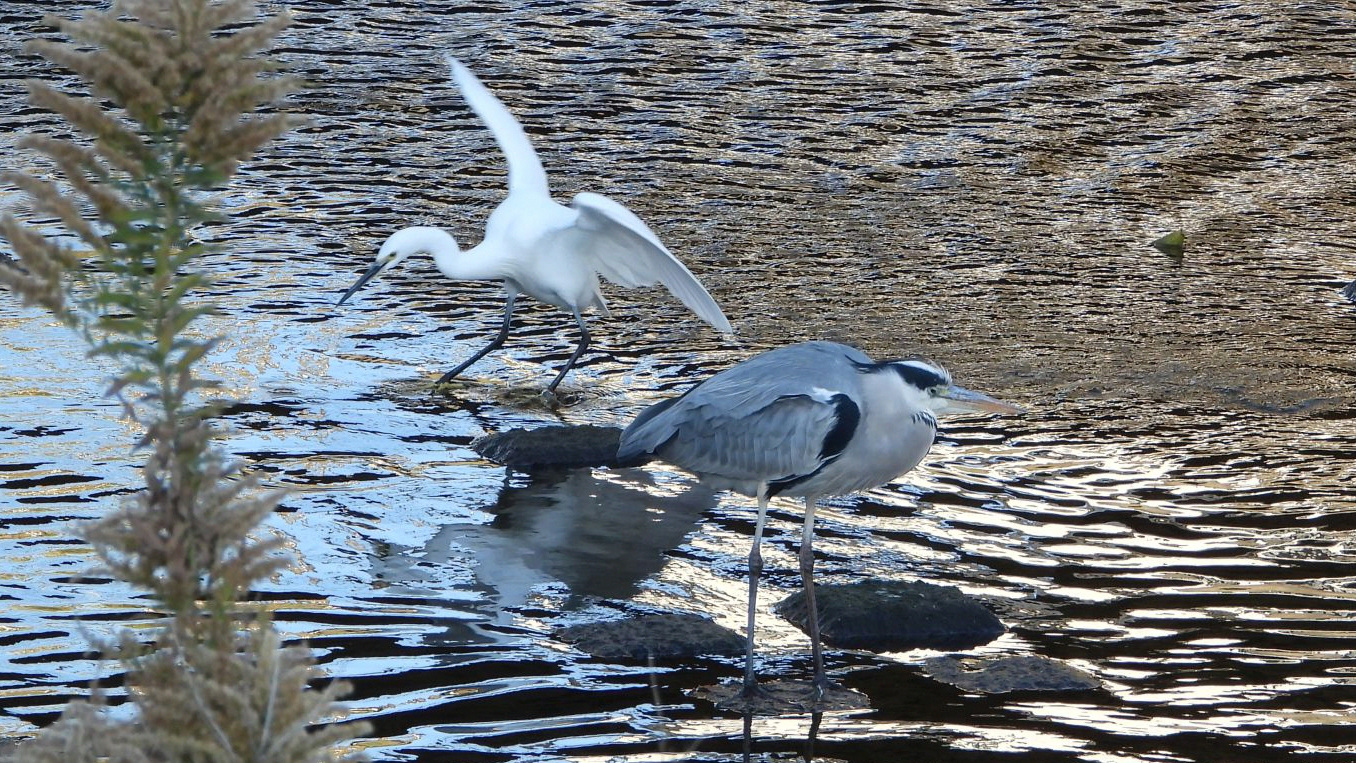 南風が強く、落ち葉や土埃まで吹き付けてきて歩きにくかった。川の水が枯渇し僅かに残った水溜りには、鳥が集まっていた。早咲きの桜が数輪咲いていた。