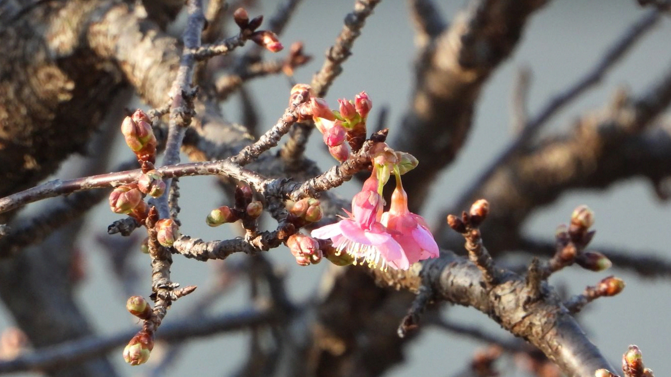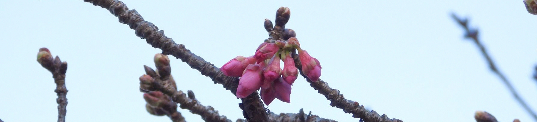 ⬇️ 早咲きの桜 「さくら小」近く、3本ある早咲きの桜が数輪咲いていた。