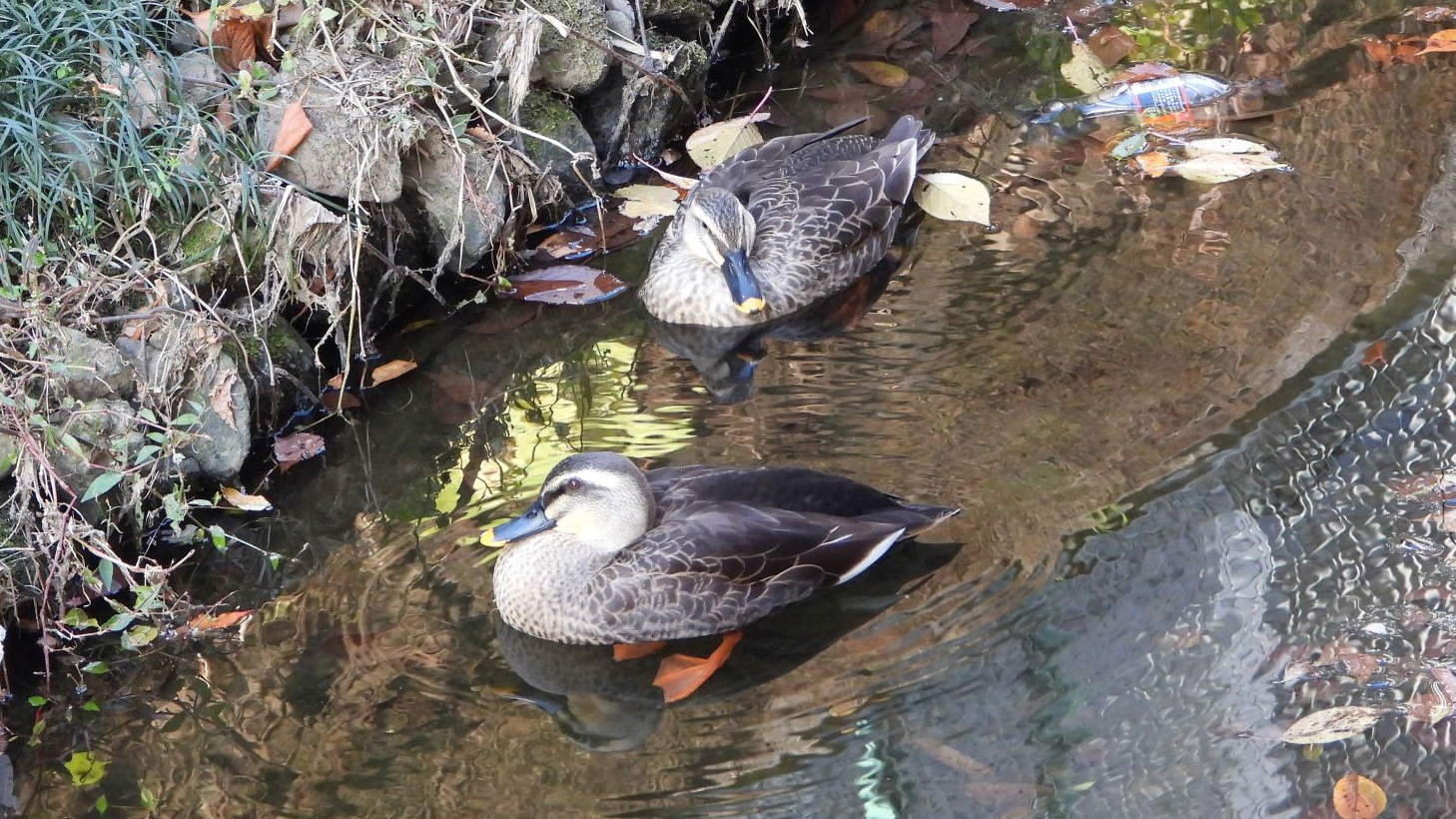 ⬇️ カルガモ きょうはこの2羽だけだった。