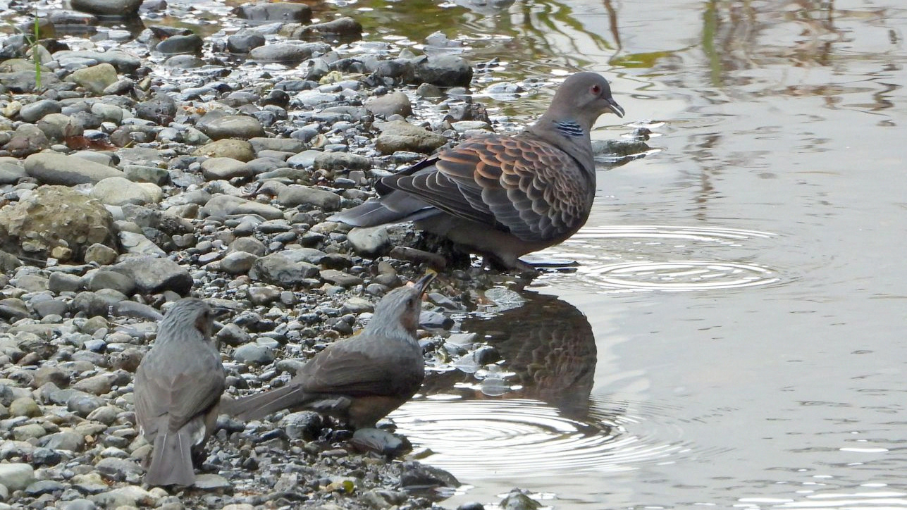 ⬇️ ヒヨドリ キジバト どちらも吸水中。