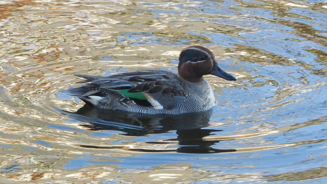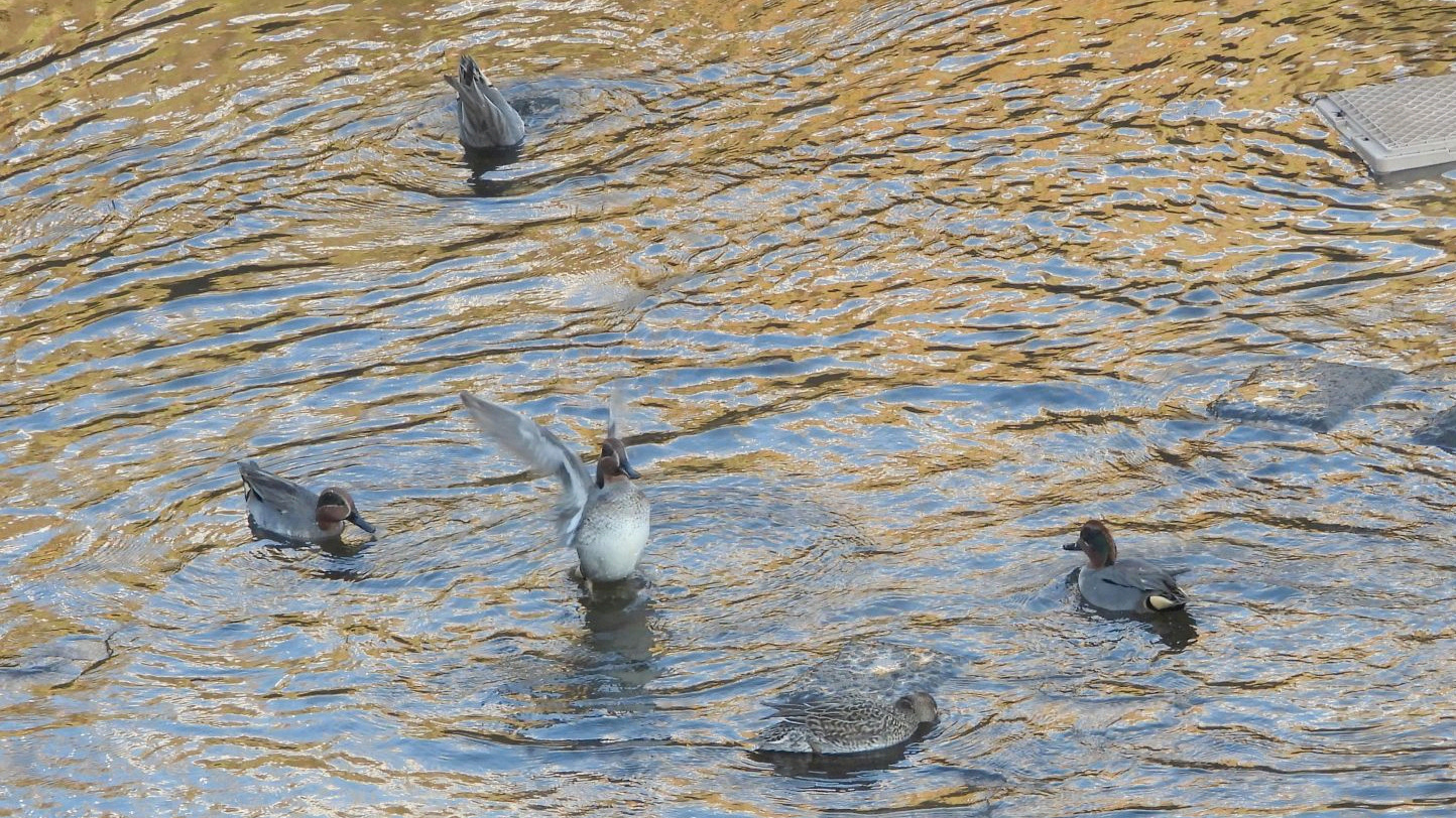 ⬇️ コガモ 宮久保橋の近くに14羽いた。うち12羽がオスだった。
