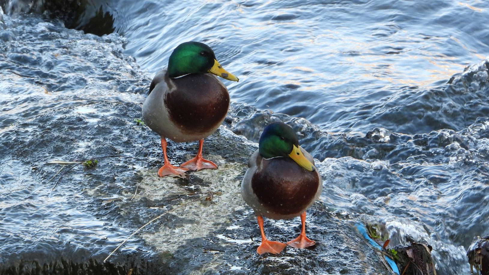 ⬇️ マガモ(オス) 同じ場所にオス2羽とメスが1羽いた。