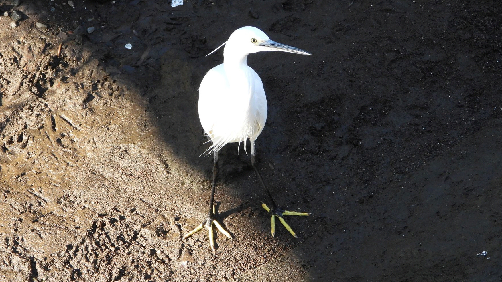 ⬇️ コサギ 干上がりつつある川底には、様々な足跡が残されている。
