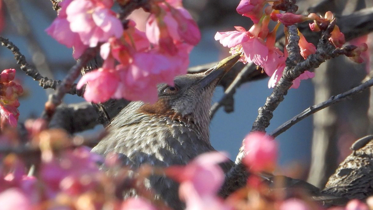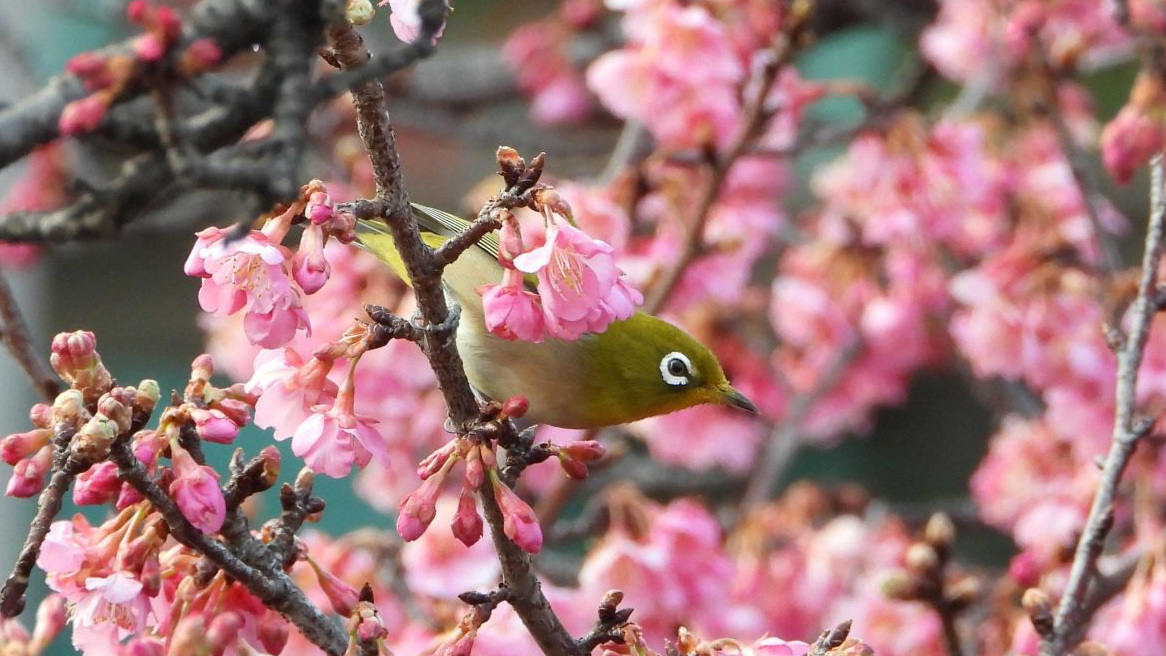 ⬇️ メジロ 早咲きの桜の満開を待って、たくさん吸蜜に来るのだが、今年はまだ少ない。