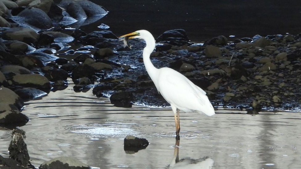 ⬇️ ダイダイサギ 水溜りになっても、まだ大きな魚が残っていたようだ。
