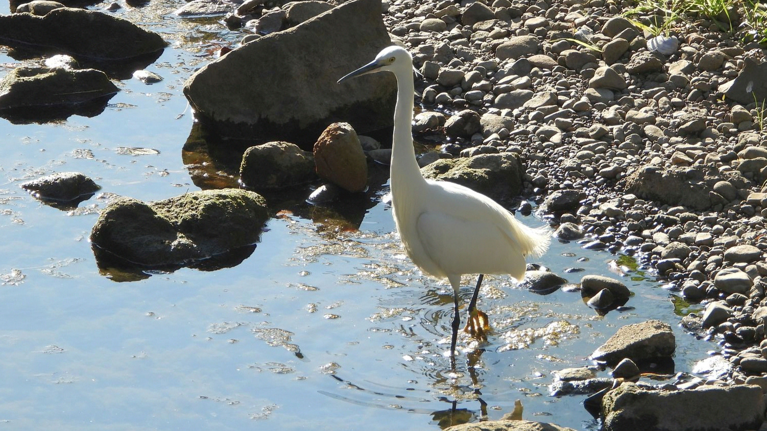 ⬇️ コサギ    残された水溜りで縄張り争いが勃発。上の個体が勝利した。