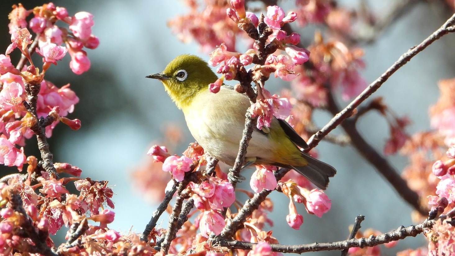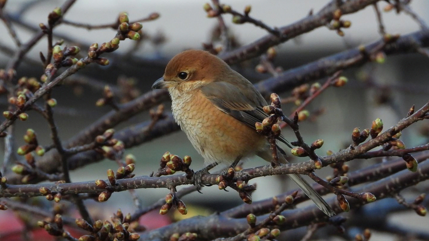 ⬇️ モズ    カワヅザクラが1輪咲いていた。