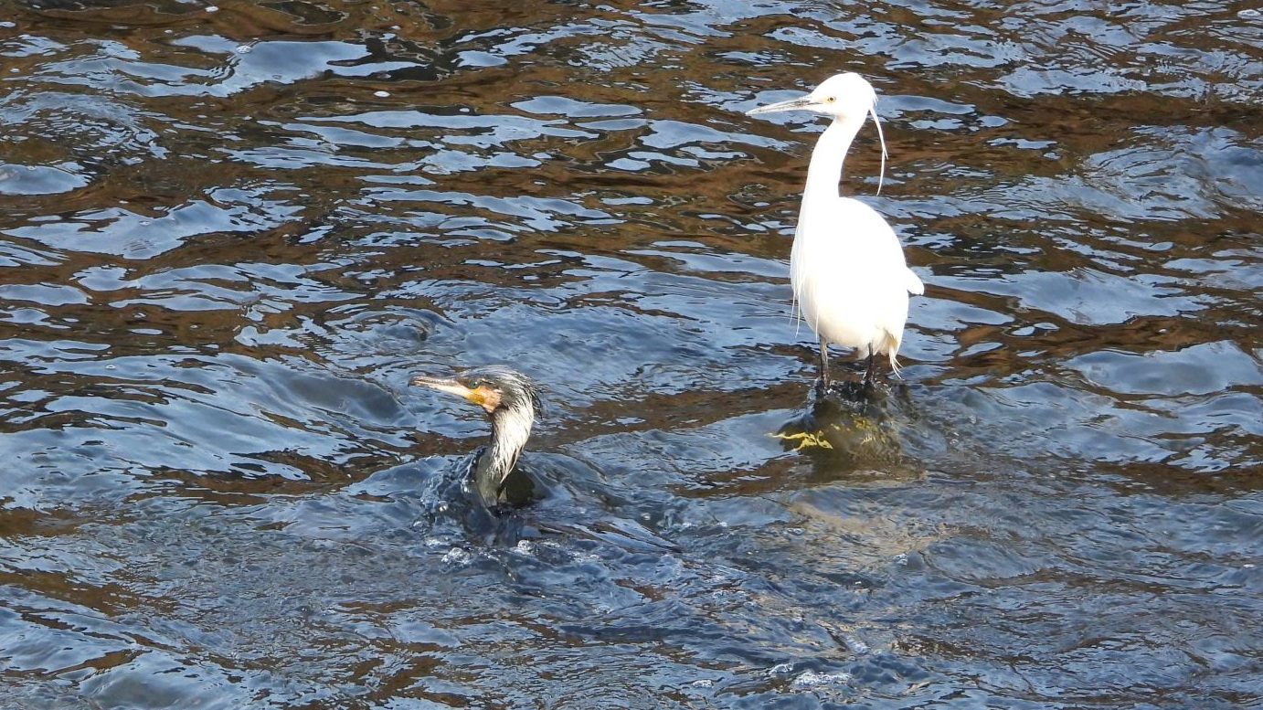⬇️ コサギ カワウ