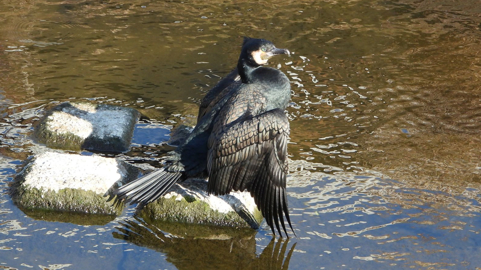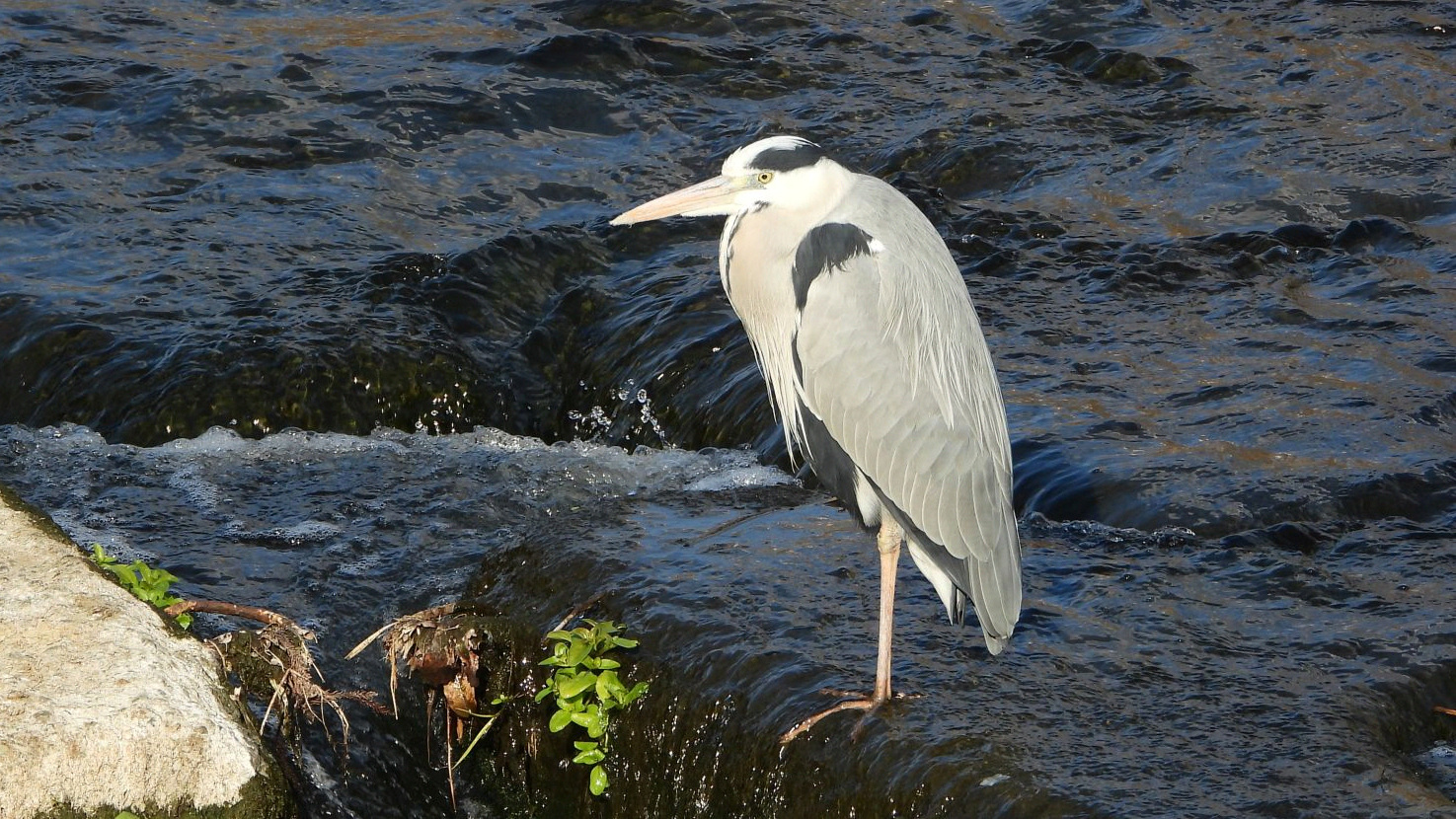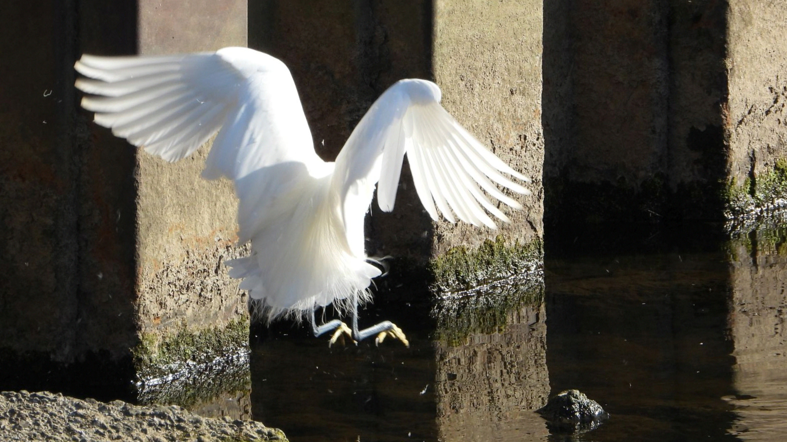 ↓ 境川のコサギ 川の中のコンクリートブロックからジャンプ!