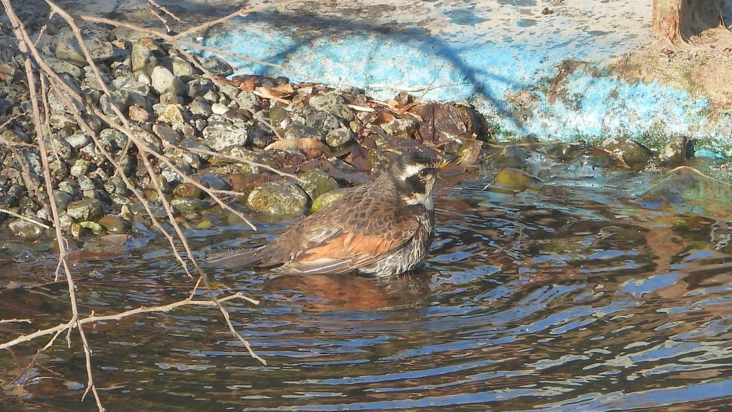 ⬇️ ヒヨドリ 仲間を呼んでいるのだろうか。水浴びしながら鳴いていた。