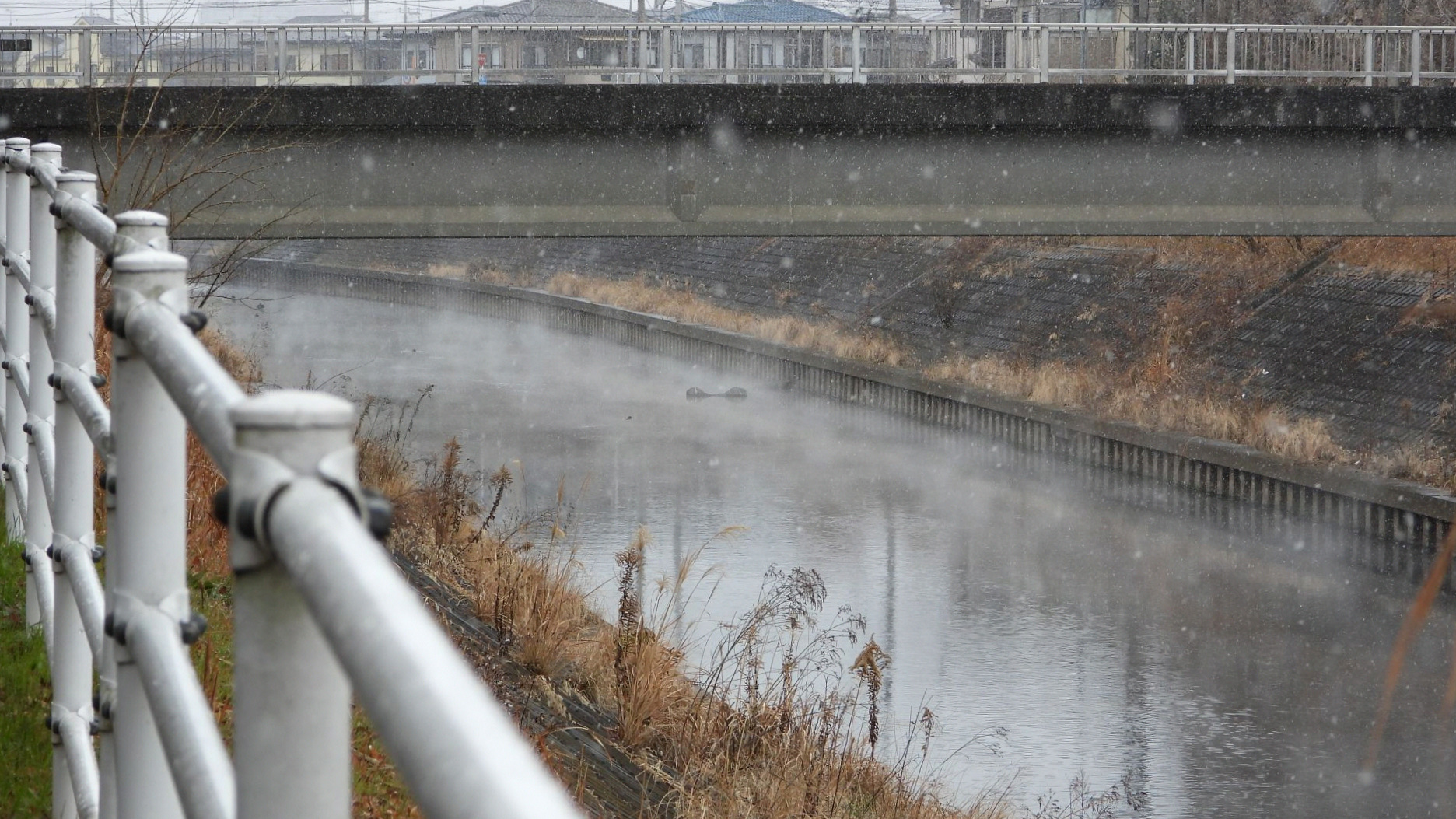 ⬇️ 川霧? 冷たい空気が暖かい水面に触れて発生するそうだ。肉眼ではもっと、もやって見えた。