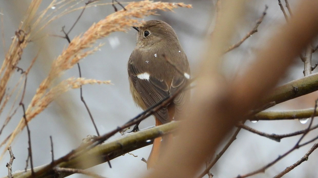 ⬇️ ジョウビタキ(メス) 背中に雪が…。
