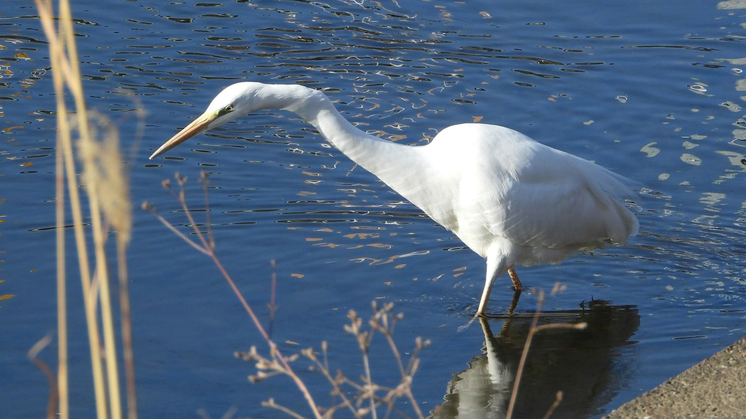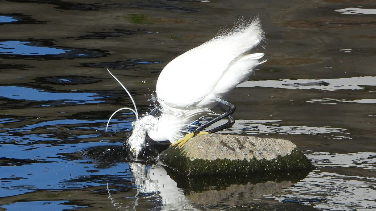 ⬇️ コサギ 浅い水溜りで餌探し。魚ではないものも食べているようだ。