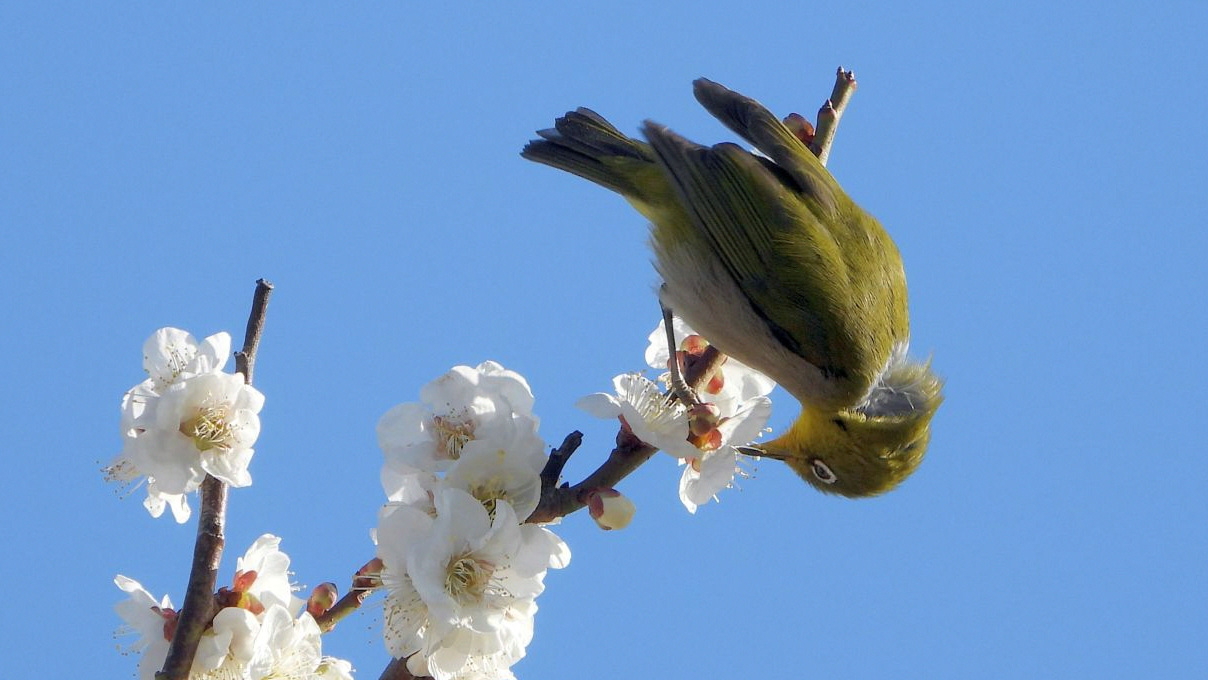 ⬇️ メジロ いつの間にかウメも満開だ。
