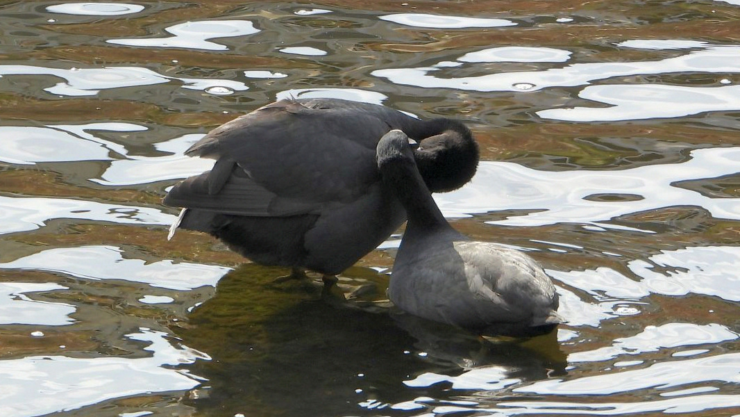 ↓ キジバトの求愛の羽繕いによく似ているから、この2羽はカップルになるかもしれない。
