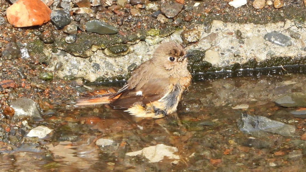 ⬇️ ジョウビタキ(メス) 水浴び中。