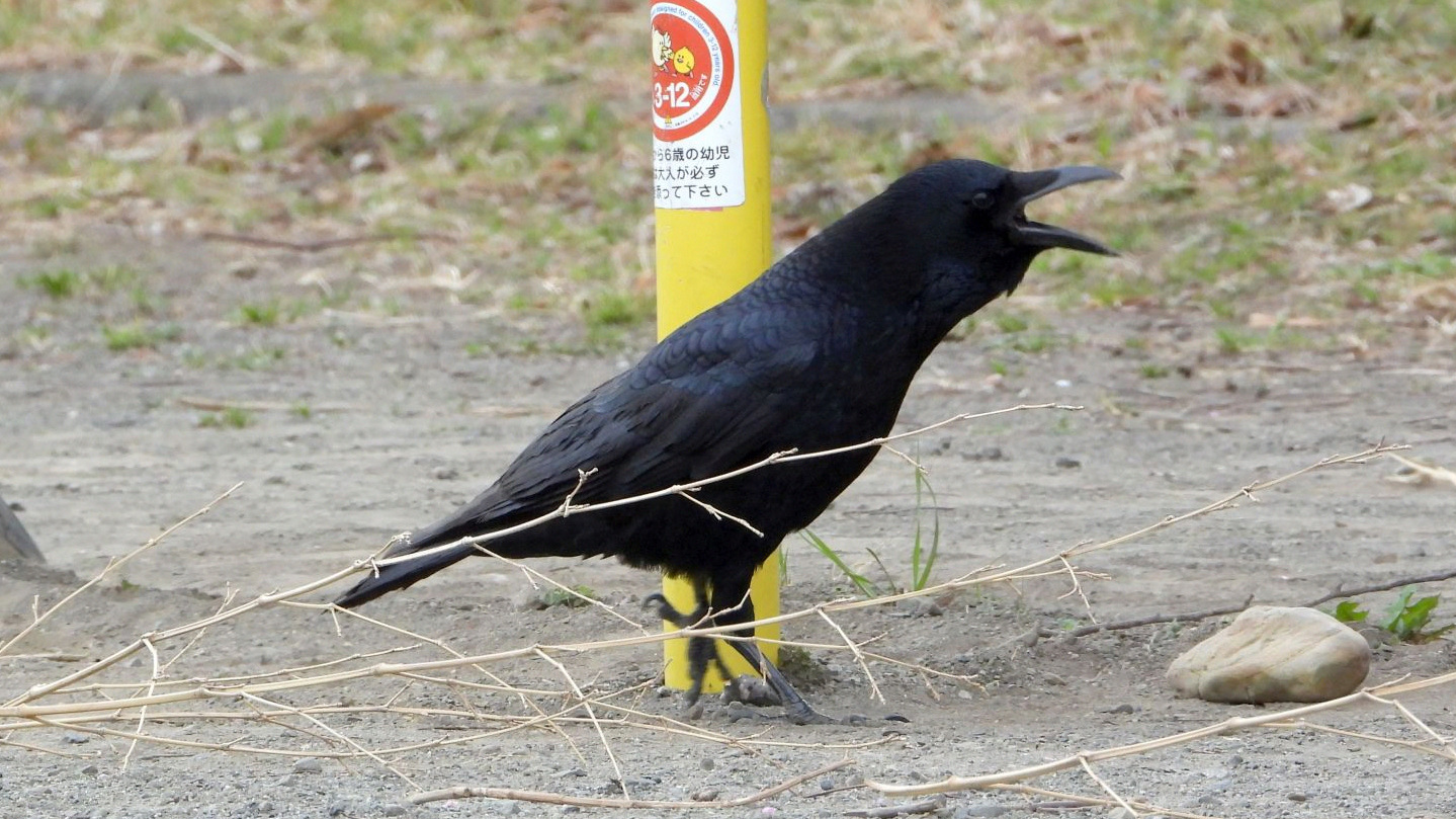 ⬇️ ハシボソガラス でかい声で吠えて?いた。繁殖期によく見られる行動らしい。