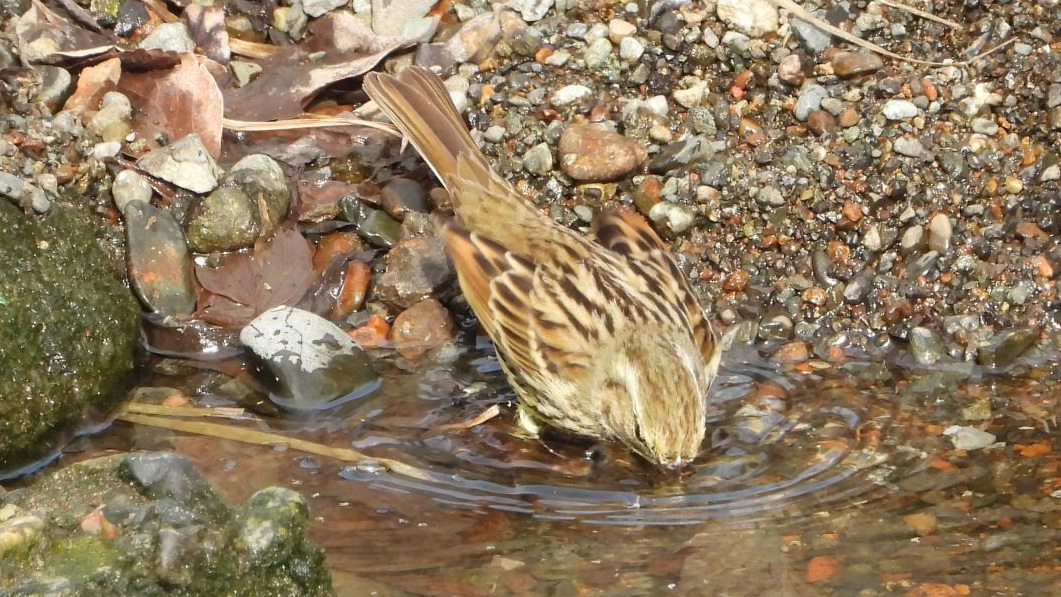 ⬇️ アオジ 上がオスで下がメス。メスは水浴びに来たようだ。