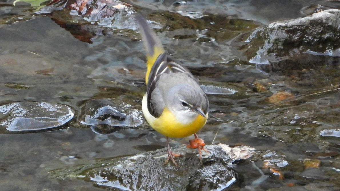 ⬇️ キセキレイ 脚を痛めている個体が「子どもの森」の下にいた。腫れが大きくなっているようだ。