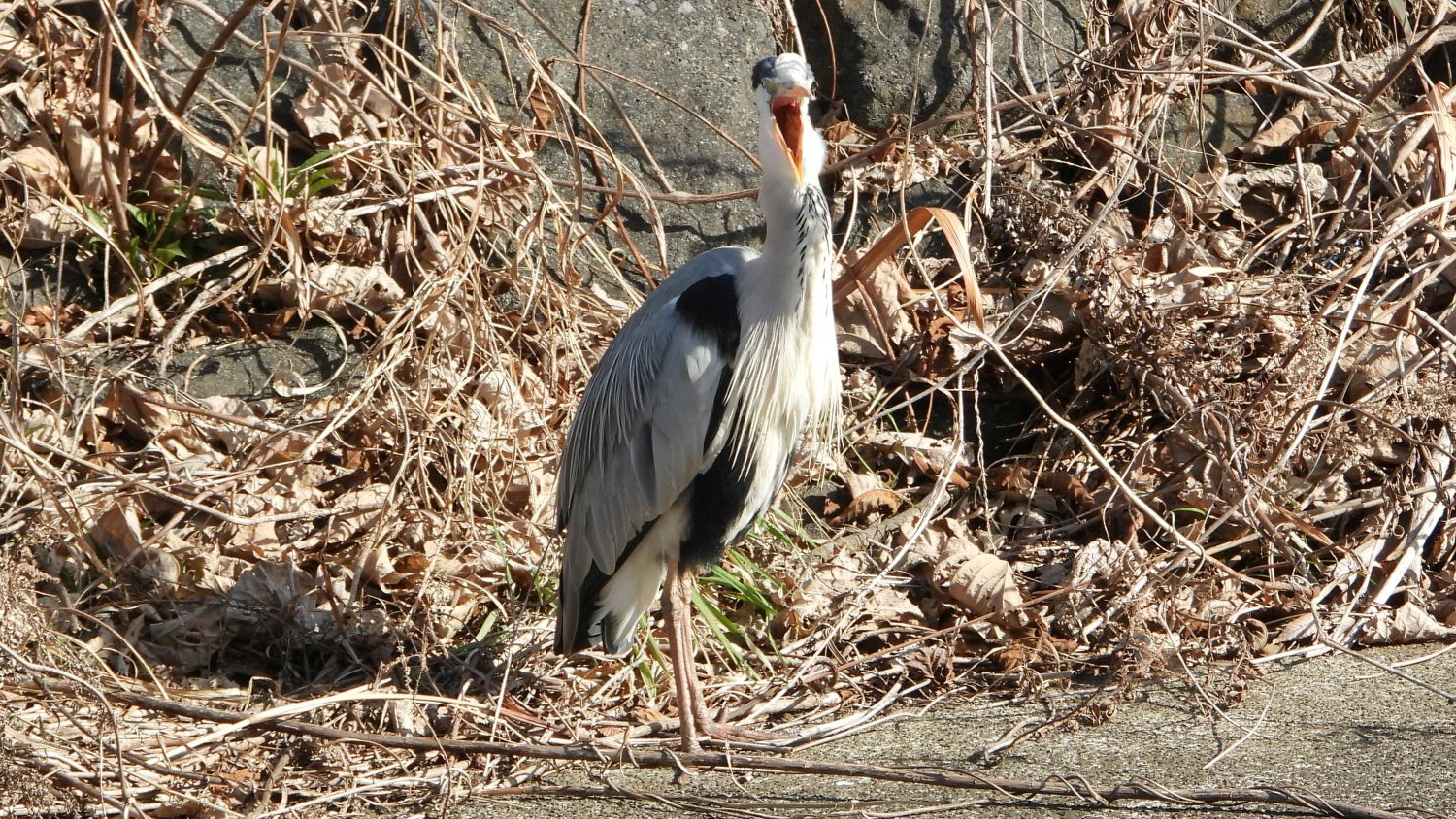 ⬇️ アオサギ あくび?かな。