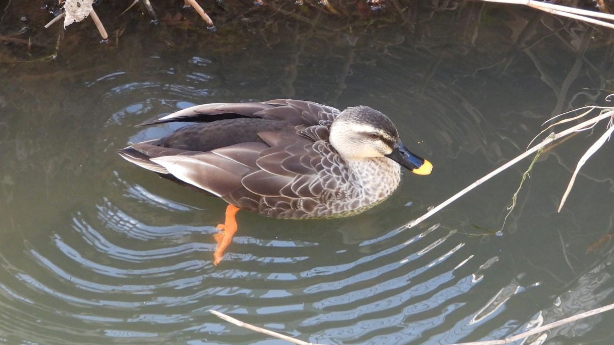 ⬇️ カルガモ 風が強くて相沢川に避難してきたのか、きょうは6羽いた。