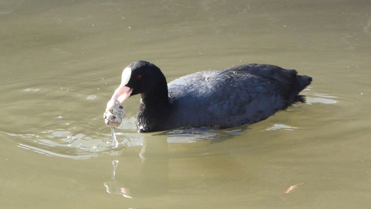 ⬇️ オオバン すぐに仲間に横取りされてしまったが、いつもの水草ではない、これは何だ?