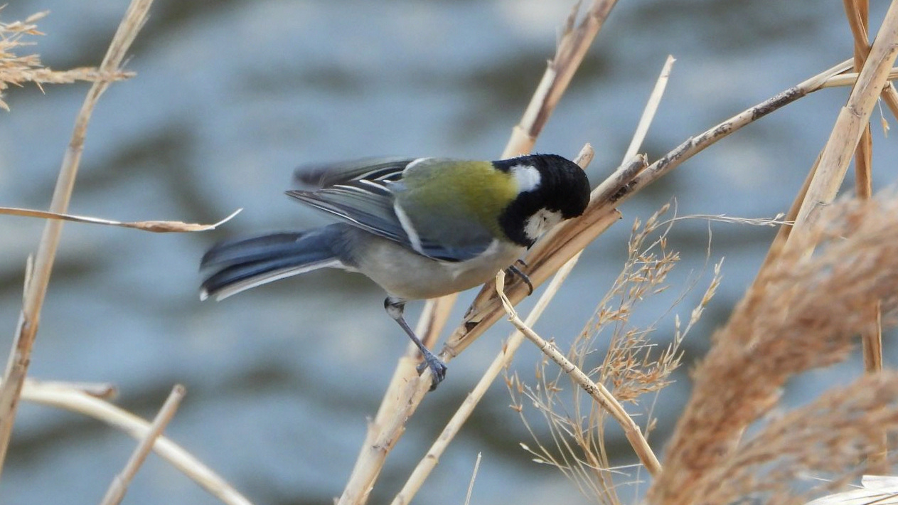 ⬇️ シジュウカラ 飛び立とうとした瞬間に強風が吹いた。バランスを崩してオットット。