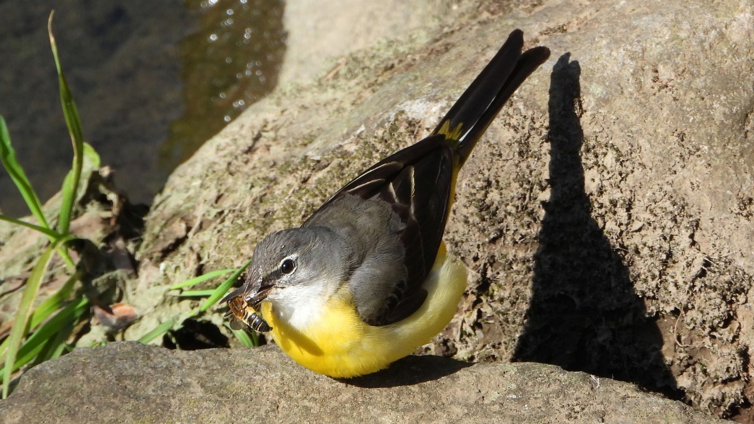 ⬇️ キセキレイ 脚が病気の個体がアブの仲間を捕まえた。