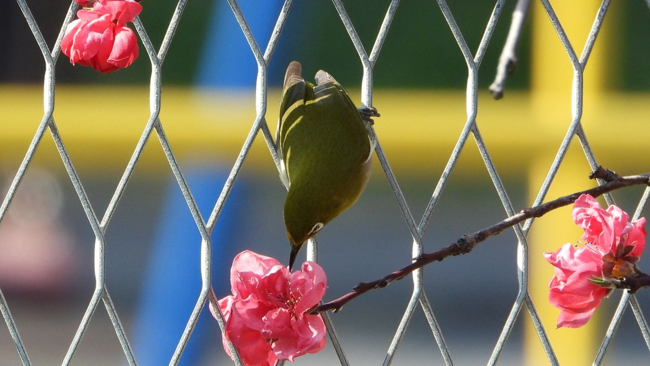 ⬇️ メジロ 横浜緋桜(上の写真)にも、花桃(下の写真)にもやって来た。
