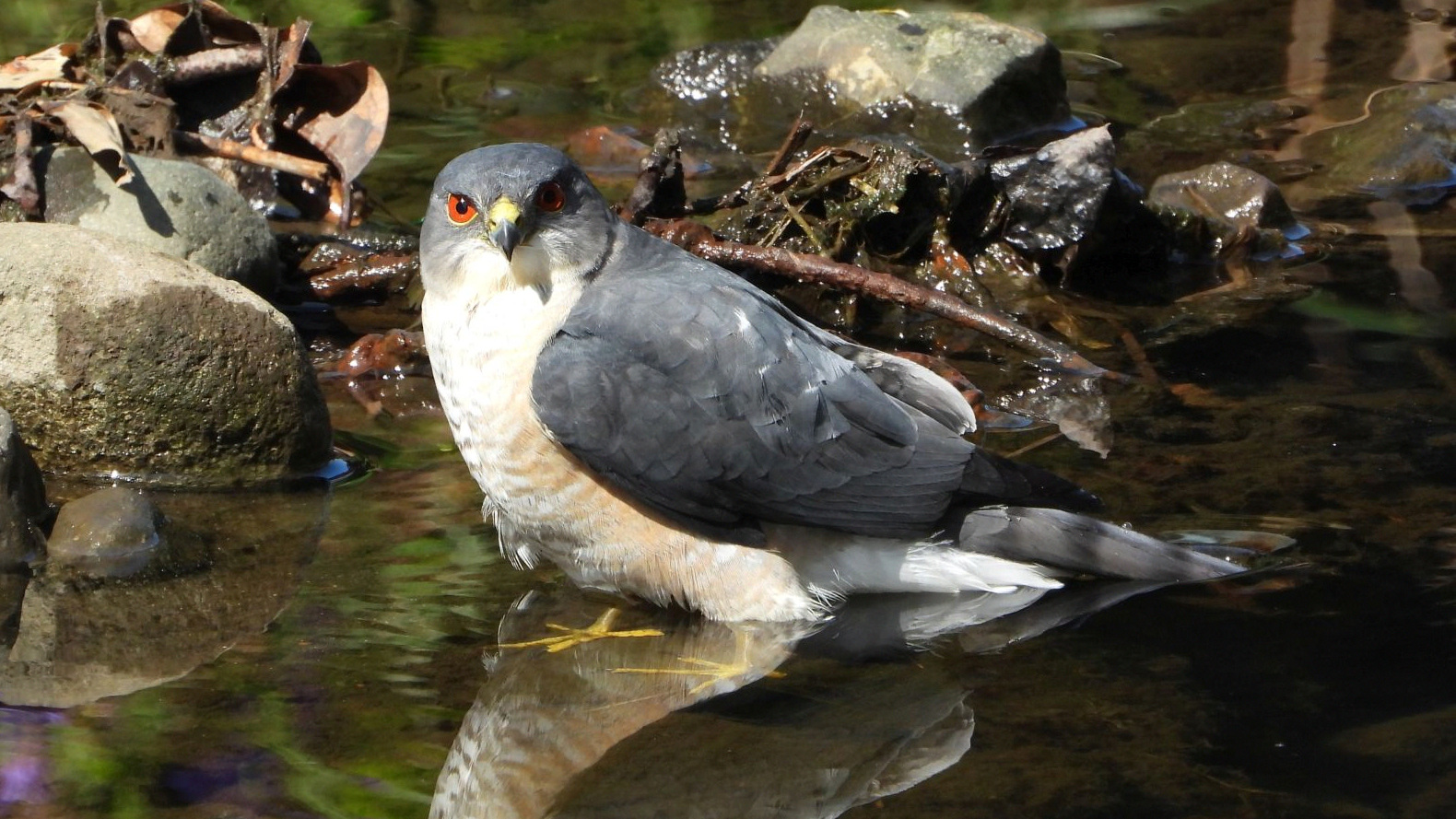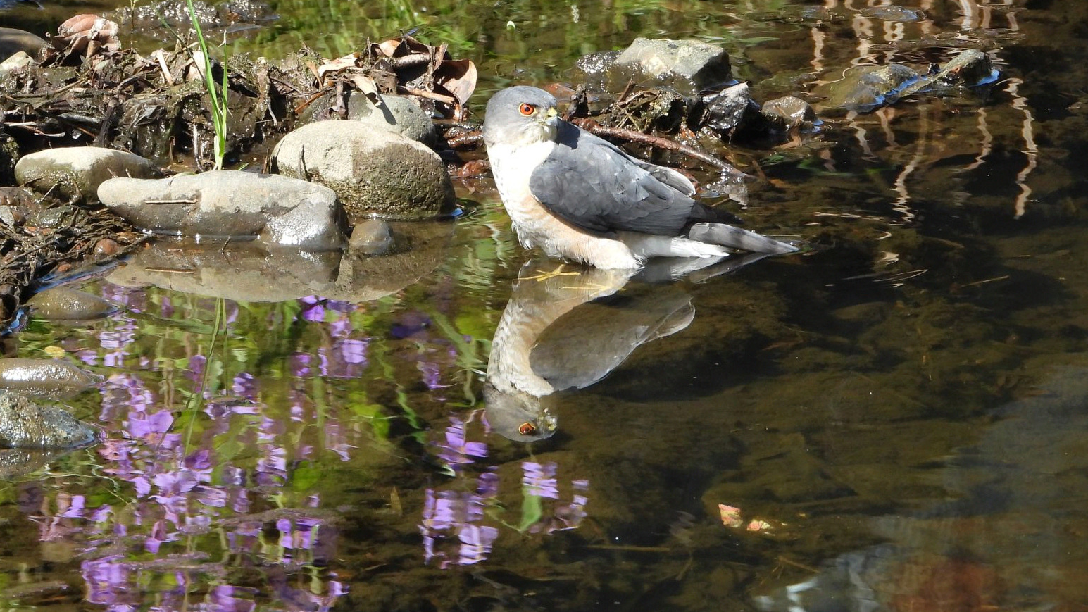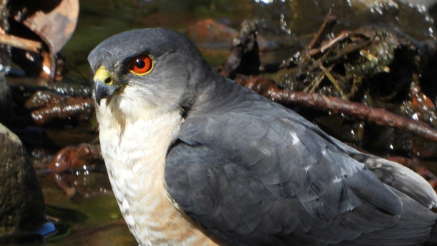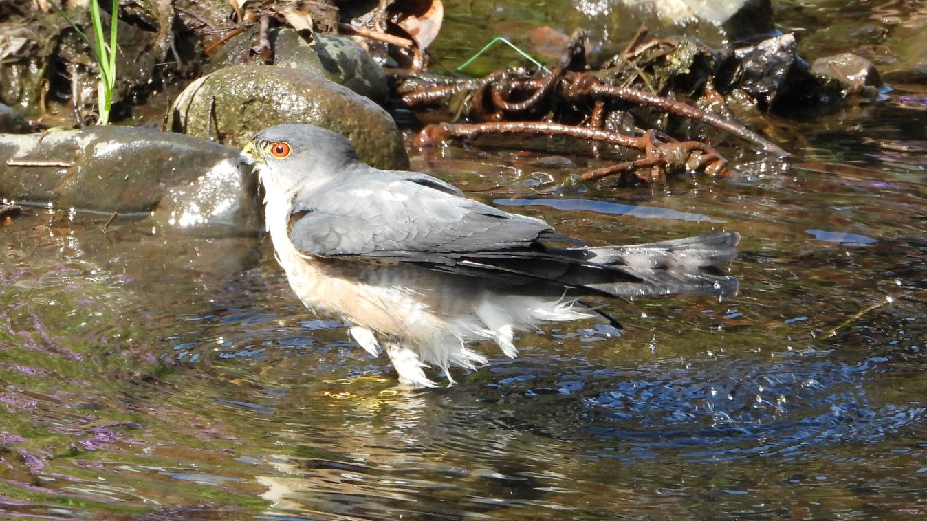 ⬇️ ツミ 水浴びにやって来た。目が赤いのはオスだそうだ。