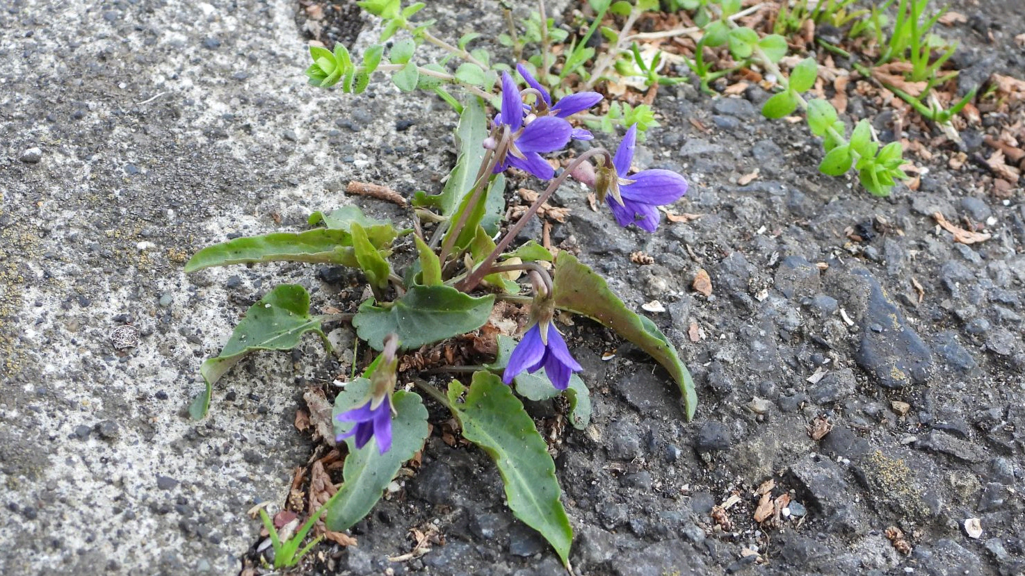 ⬇️ タチツボスミレ   葉脈が赤いから、アカフタチツボスミレかもしれない。