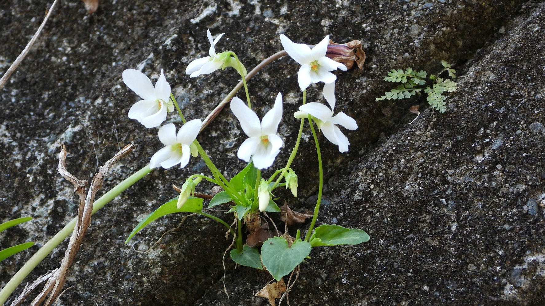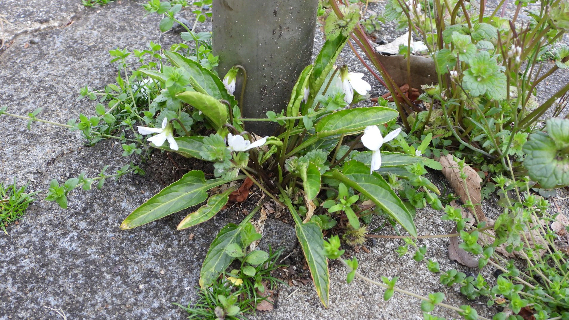 ⬇️ シロバナコスミレかな 植物は採取したくないので写真を頼りにネットで検索した。無茎種で条がなく無毛…などで絞り込んでいきこの名前にたどり着いた。ネットは信用できないことも多いので、自信はない。