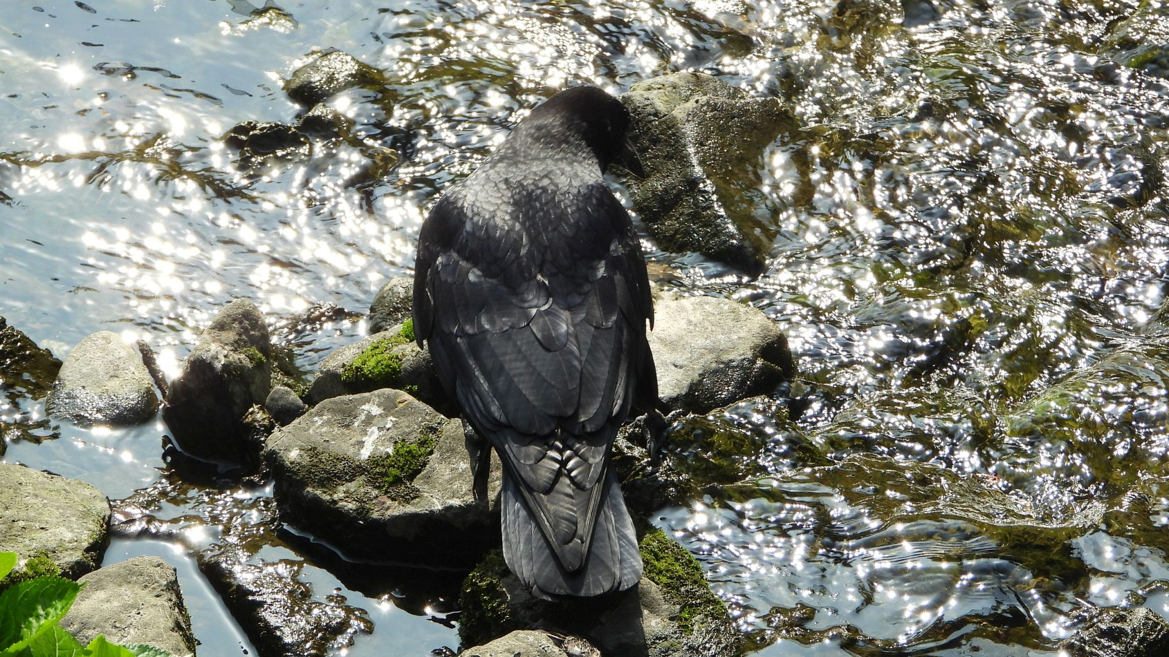 ⬇️ ハシボソガラス 水浴びだけでなく、餌を探しに川に来る。